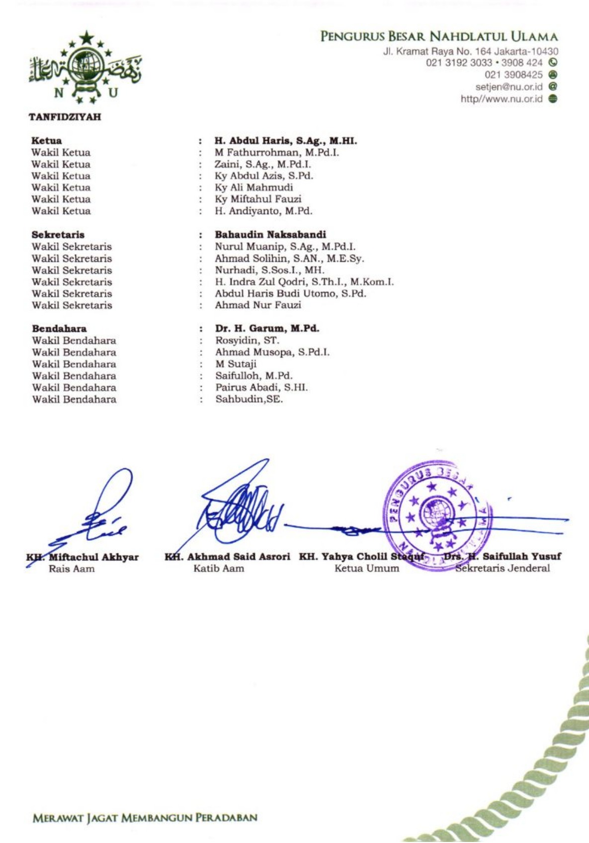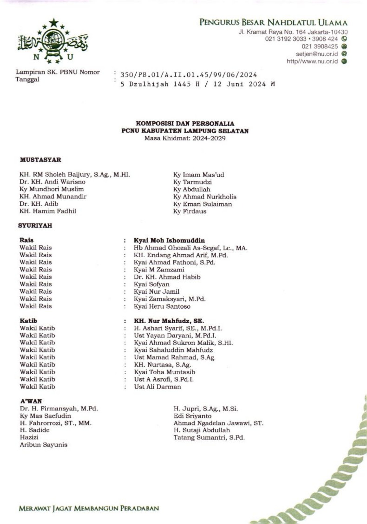 SK Pengurus PCNU Kabupaten Batam Periode 2024-2029